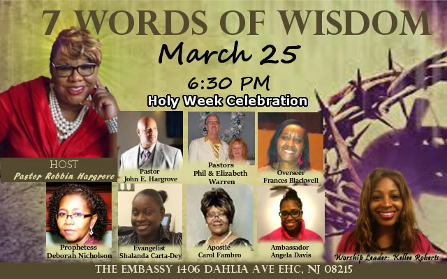 Come and be blessed by the Embassy's leadership team as they minister on Jesus's 7 last words.
